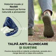 Materialul inovator se adaptează perfect la forma piciorului, oferind libertate de mișcare completă și confort ca și cum ai merge desculț pe o suprafață moale.